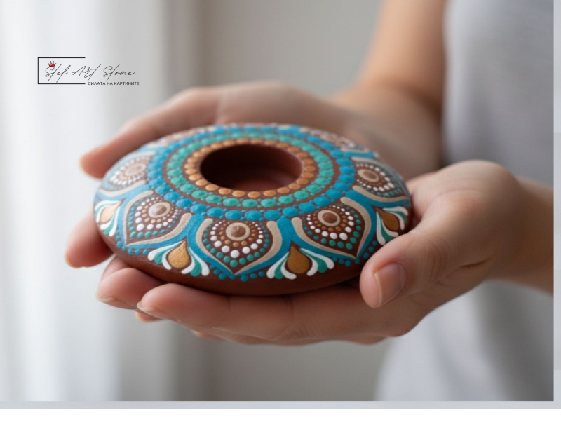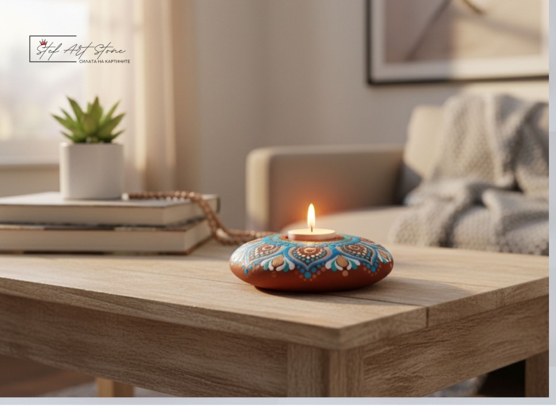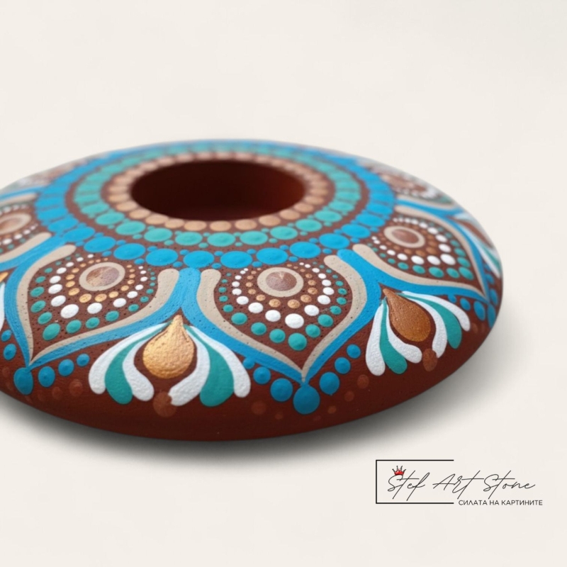 - 🎨 РЪЧНО РИСУВАН СВЕЩНИК МАНДАЛА – Уникален арт дизайн.