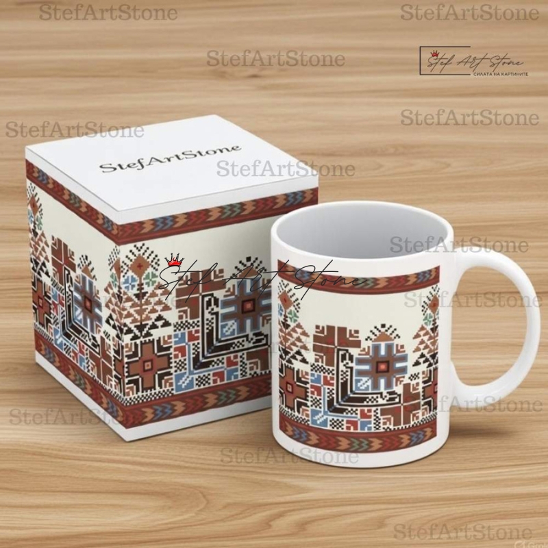 Всяка чаша от серия "Възраждане" пристига при вас в красива тематична кутия, която повтаря мотива на самата шевица. Не е нужно да мислите за допълнителна опаковка – получавате напълно завършен и стилен подарък, готов за връчване веднага!