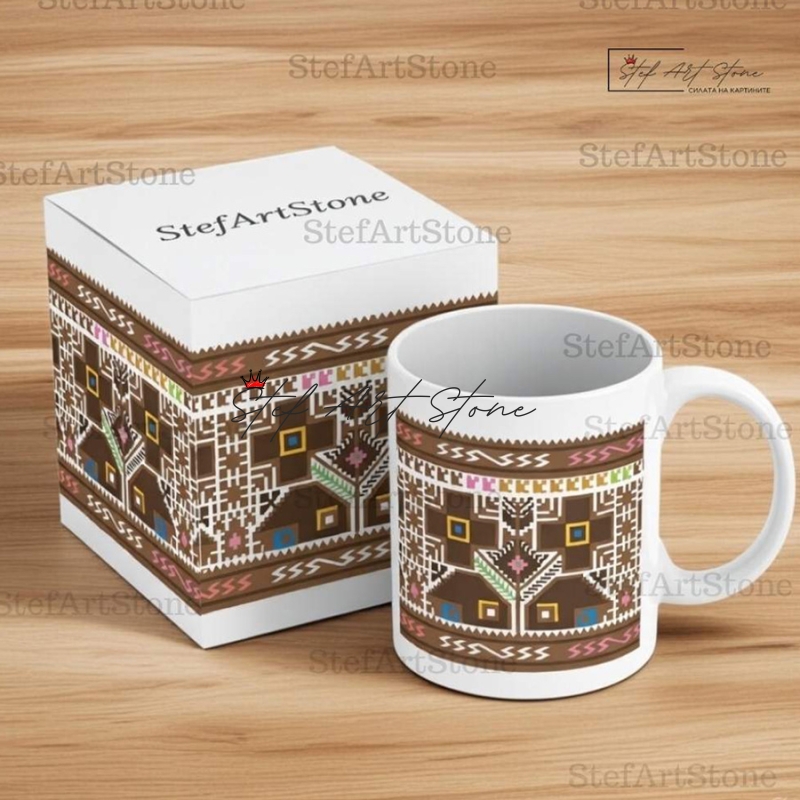 Всяка чаша от серия "Възраждане" пристига при вас в красива тематична кутия, която повтаря мотива на самата шевица. Не е нужно да мислите за допълнителна опаковка – получавате напълно завършен и стилен подарък, готов за връчване веднага!