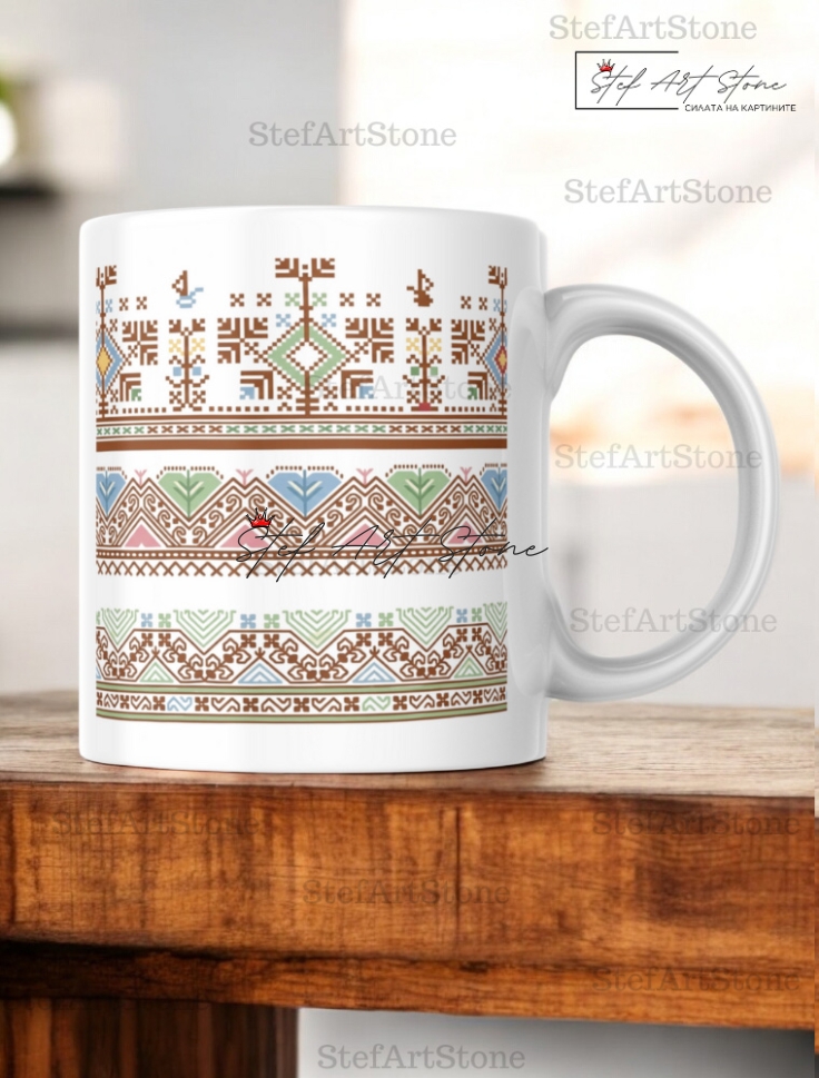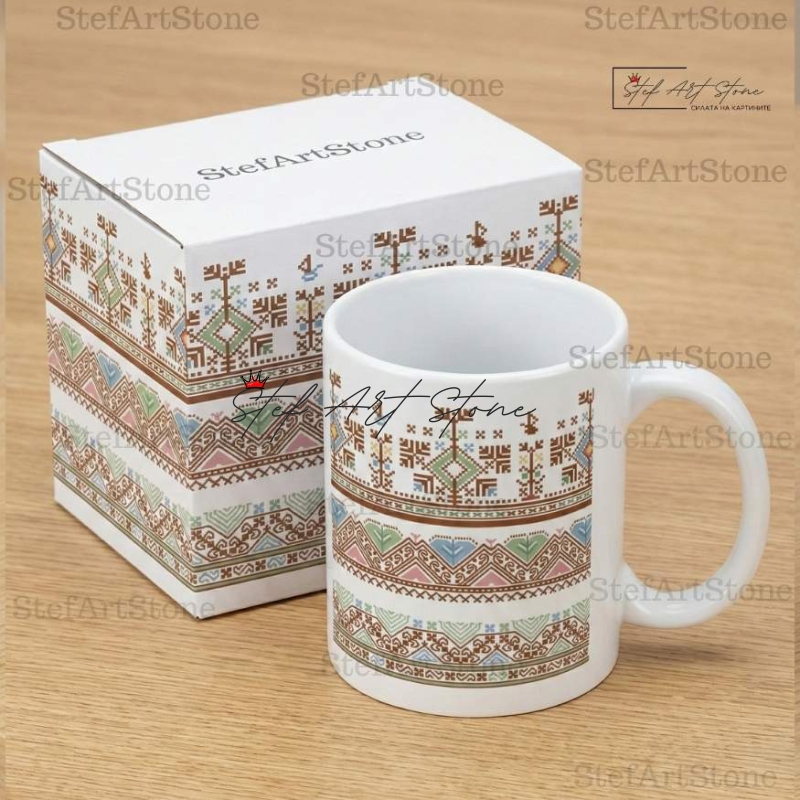 Всяка чаша от серия "Възраждане" пристига при вас в красива тематична кутия, която повтаря мотива на самата шевица. Не е нужно да мислите за допълнителна опаковка – получавате напълно завършен и стилен подарък, готов за връчване веднага!