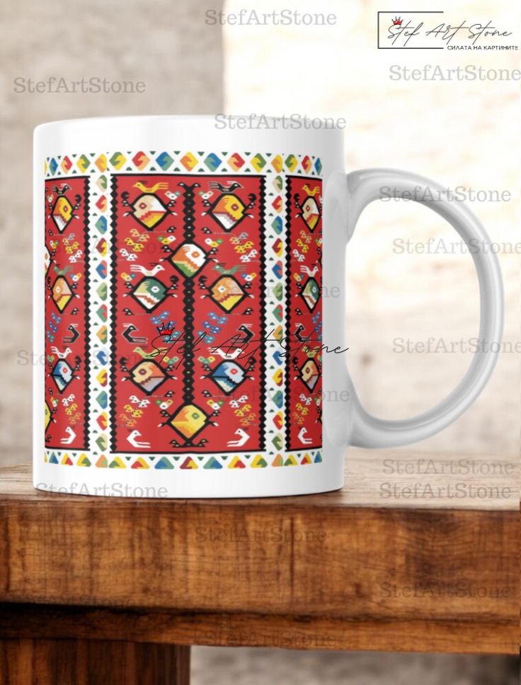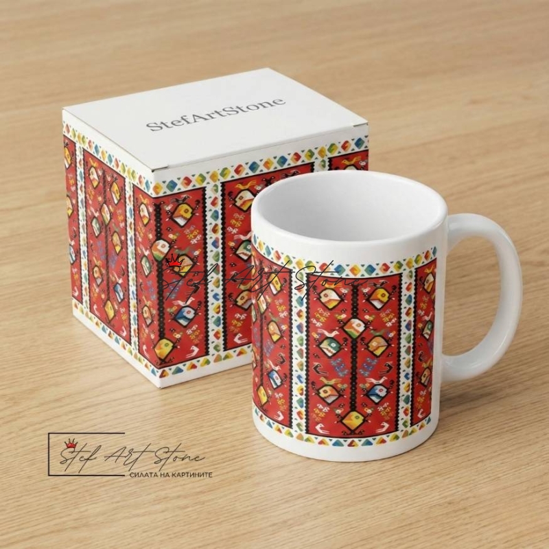 Чаша „Ален Чипровски Килим“ – Празнична Хармония с Птици | Автентичен мотив от Чипровски килими