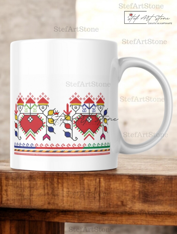 Тази керамична чаша с шевица е един от най-уютните модели в нашата колекция. Съчетавайки автентичния български дизайн с модерна изработка, тя е перфектният подарък за нов дом, за семейни празници или за скъп човек.