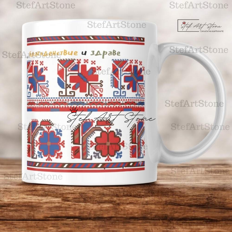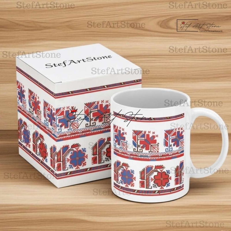 Керамичната чаша с надпис и автентична шевица е жест на грижа, който остава за цял живот.