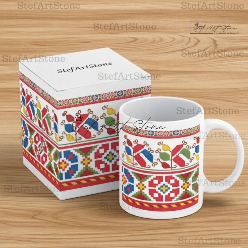 Керамична Чаша със Самоковска Шевица "Цветна Хармония" – Подарък в Кутия