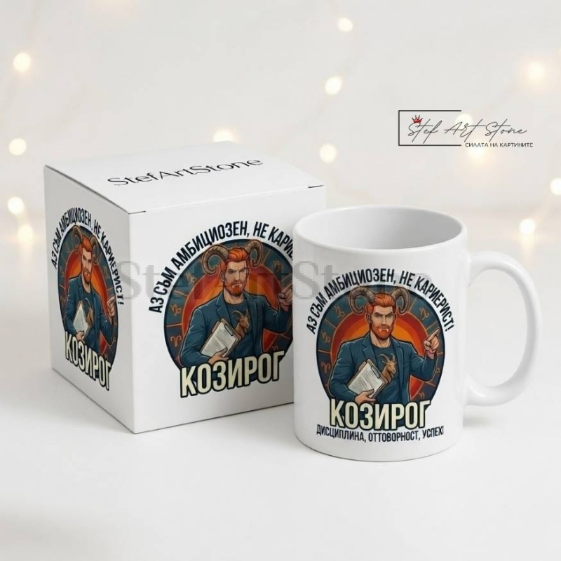 Търсите оригинален подарък за мъж зодия Козирог? Тази керамична чаша с надпис е точното решение за хора, които преследват успеха. Част от серията ни "Мотивиращи зодии", тя е създадена да вдъхновява.