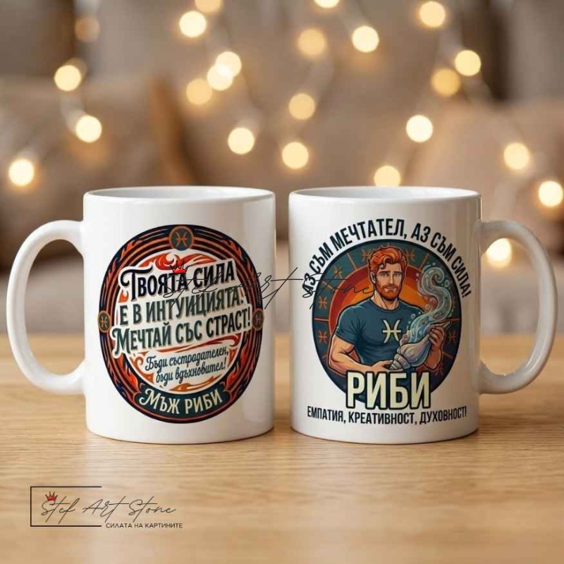 Чаша за Мъж Зодия Риби – Мотивиращ Подарък | Чаши с Надписи и Зодия