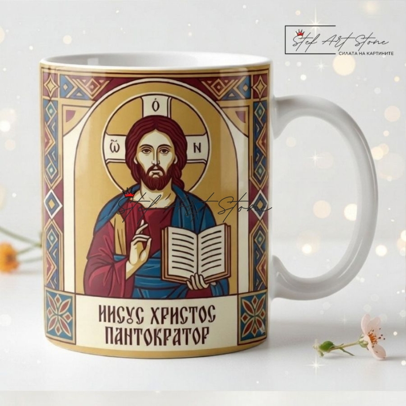 Чаша за Подарък с Икона – Исус Христос Пантократор | Подарък за Дом и Семейство