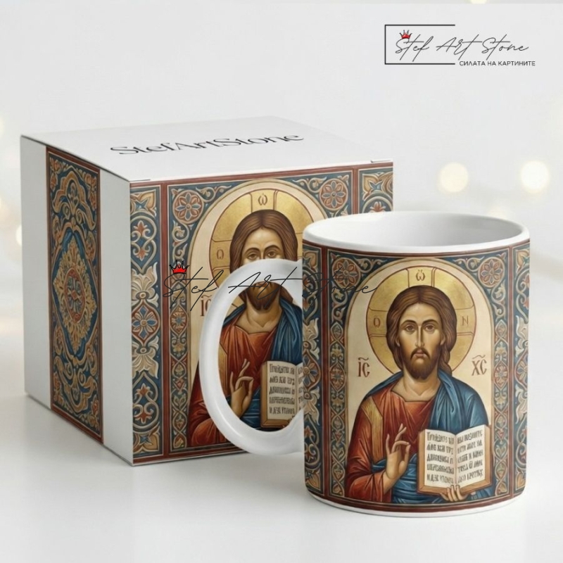Чаша за Подарък с Икона – Исус Христос Вседържител (в Кутия)