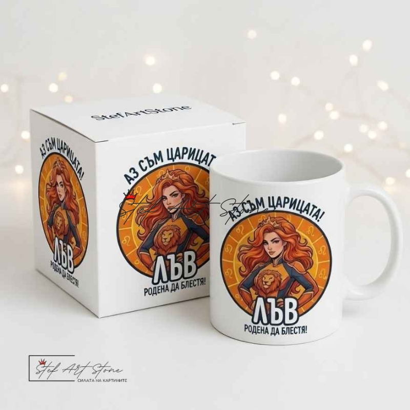 Чаша за Жена Зодия Лъв – Чаша за Подарък с Надпис и Зодия
