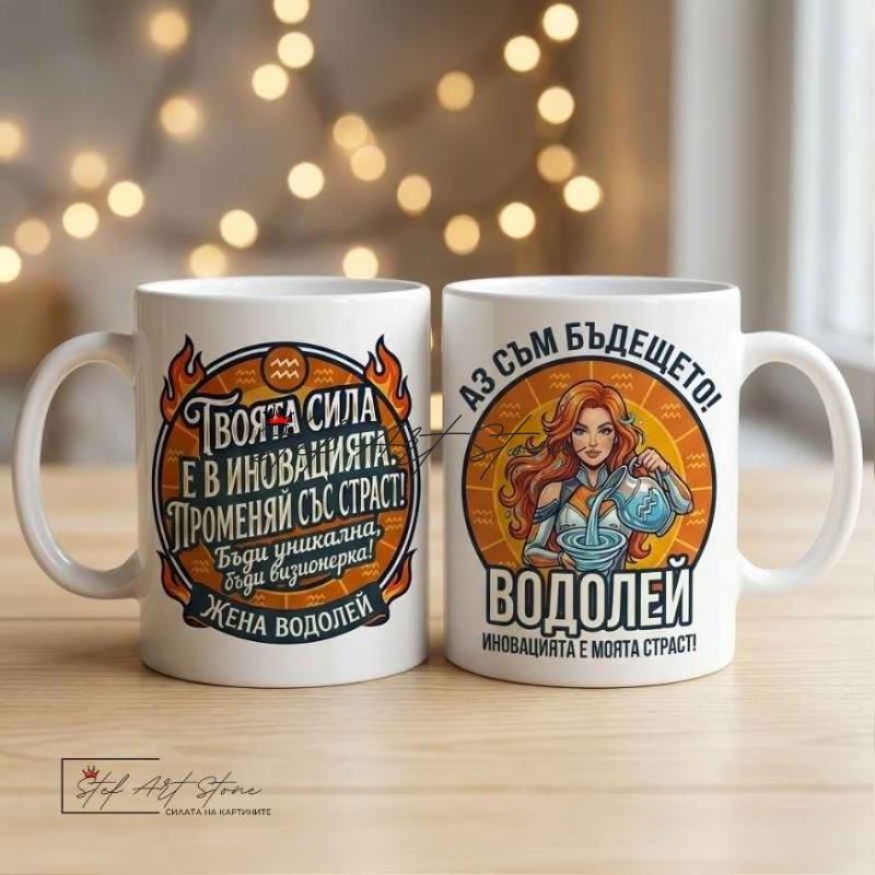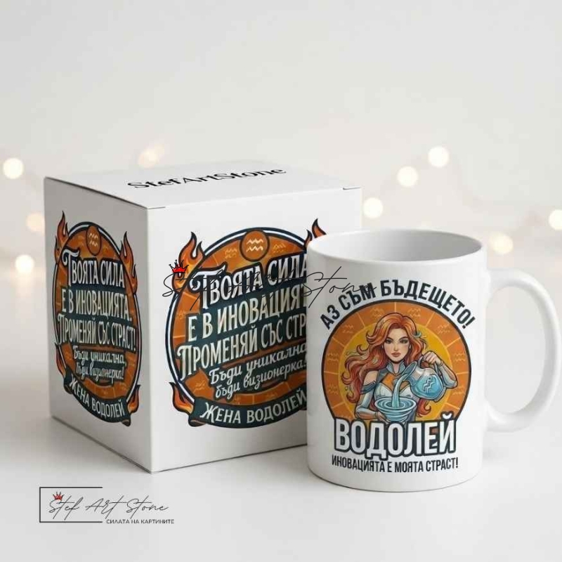 Търсите уникален подарък за жена зодия Водолей, който да подхожда на нейната нестандартна природа? Тази чаша с надпис е създадена за дамите, които винаги са крачка пред другите.