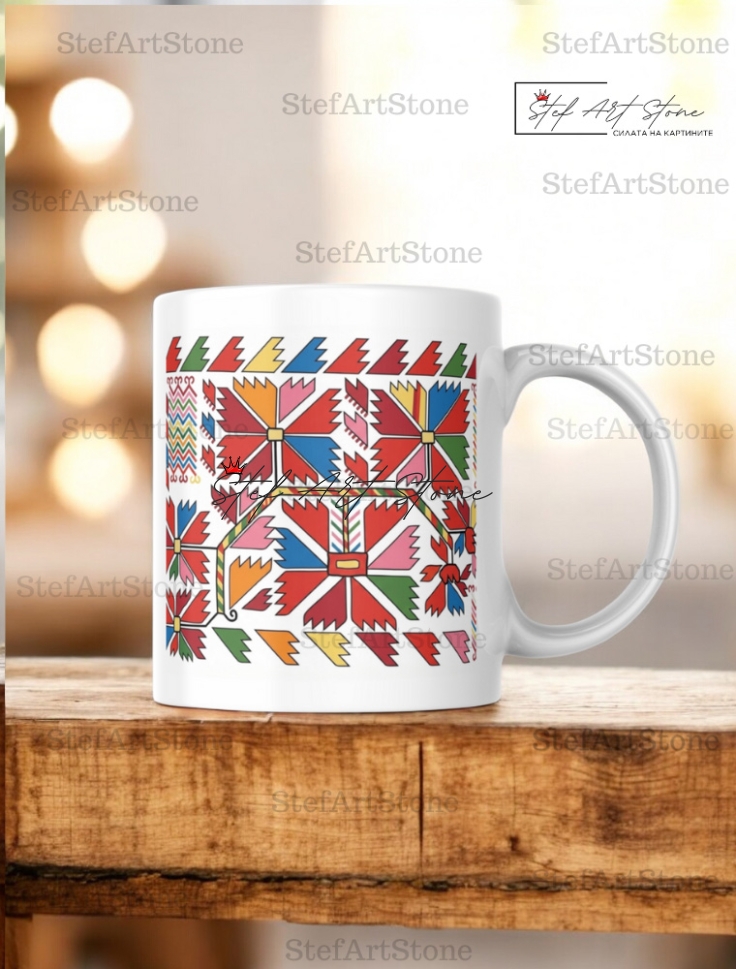 Всяка чаша от серия "Възраждане" пристига при вас в красива тематична кутия, която повтаря мотива на самата шевица. Не е нужно да мислите за допълнителна опаковка – получавате напълно завършен и стилен подарък, готов за връчване веднага!