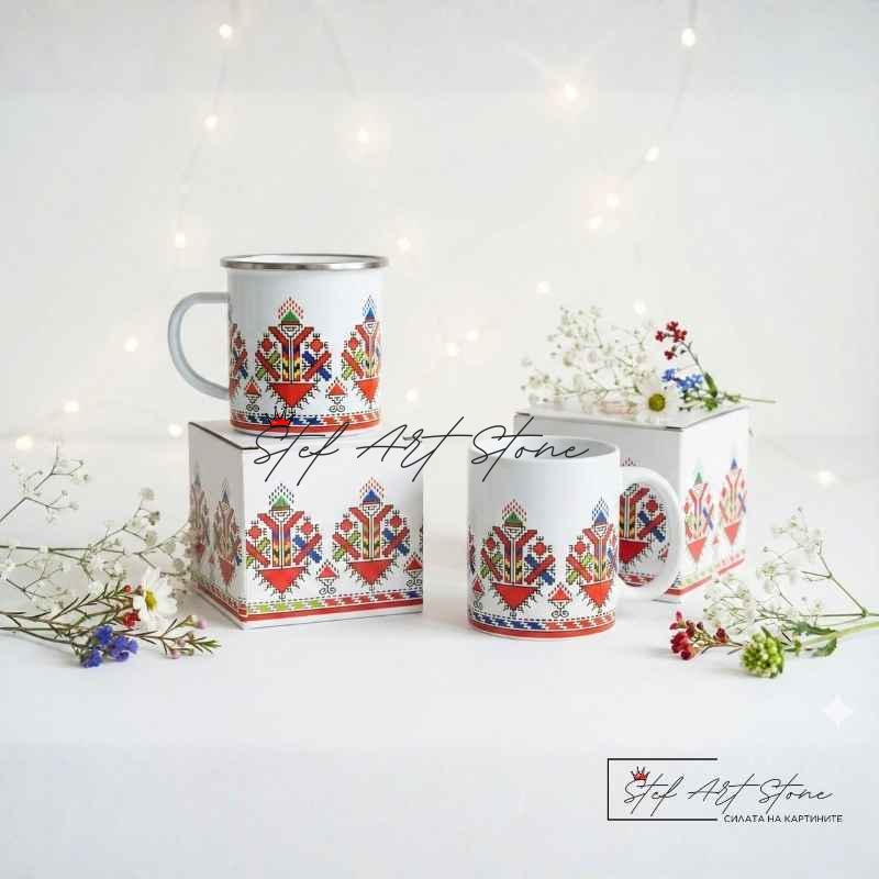 - 🎁 Завършен до съвършенство: Канчето пристига в кутия, която повтаря дизайна на шевицата. Това превръща покупката в луксозен жест на внимание, без нужда от допълнително опаковане.