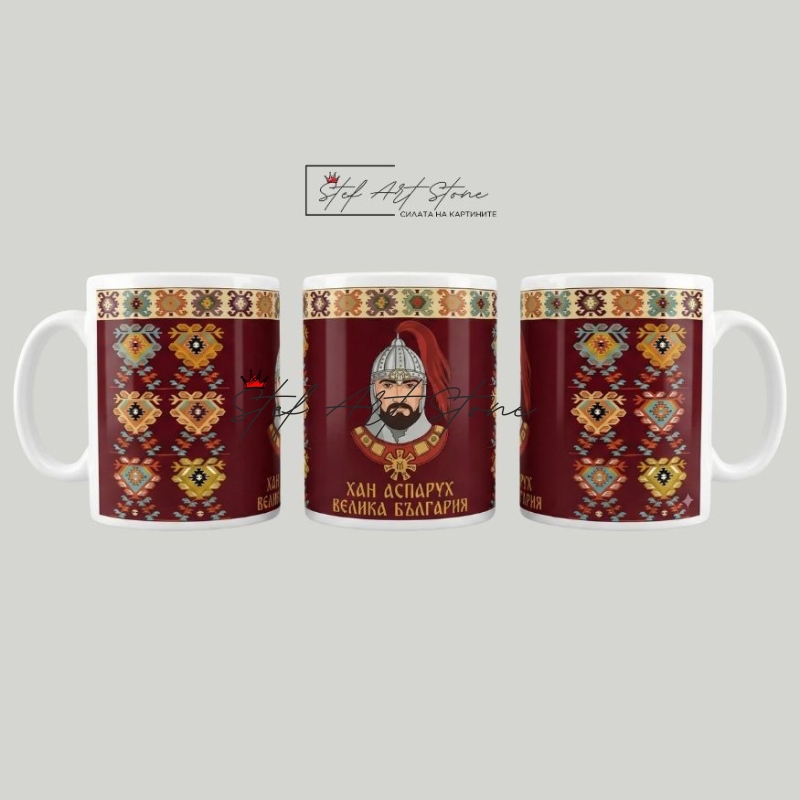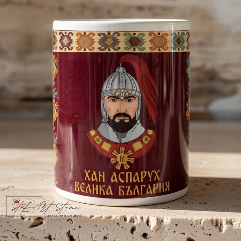 Чаша "Хан Аспарух" и Надпис Велика България – Подарък за Мъж | Чаши с Български Мотиви