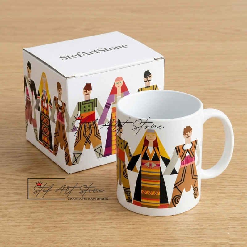 Търсите подаръци чаши? Предлагаме ви уникален модел с български мотиви – пъстро хоро в ярки цветове. Перфектно допълнение към колекцията от чаши с надписи за здраве. Пристига в кутия, готова за подаряване.
