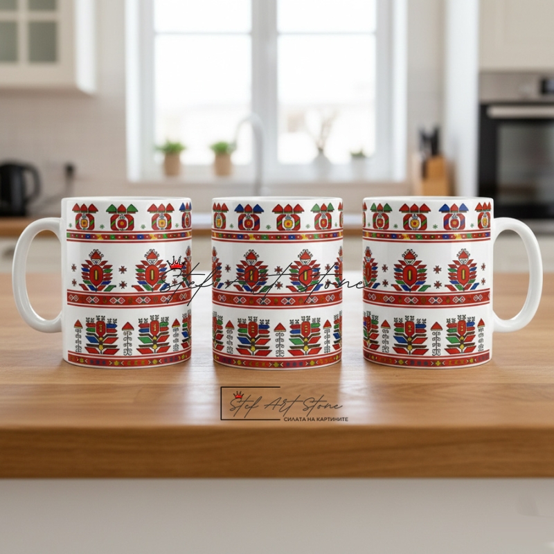 Чаша с Българска Шевица „Самоковска Градина“ – Автентичен Етно Дизайн от Серия „Възраждане“