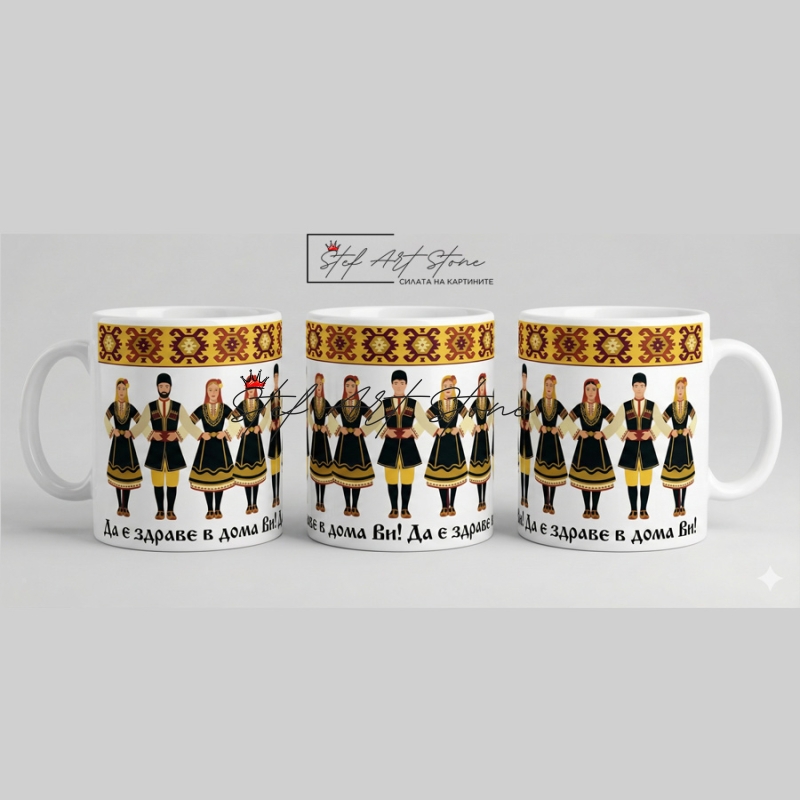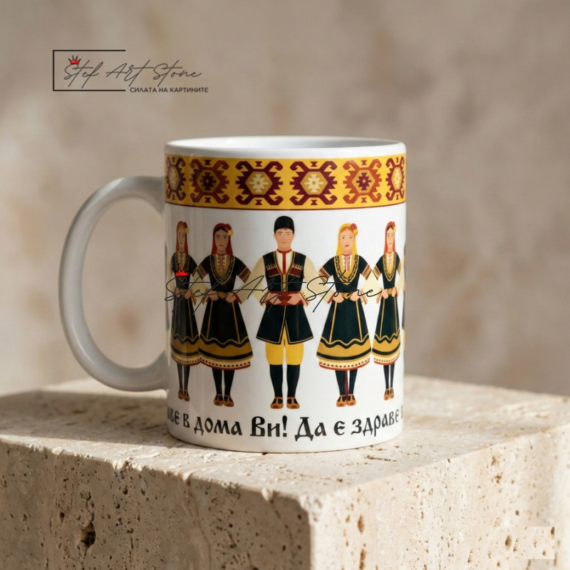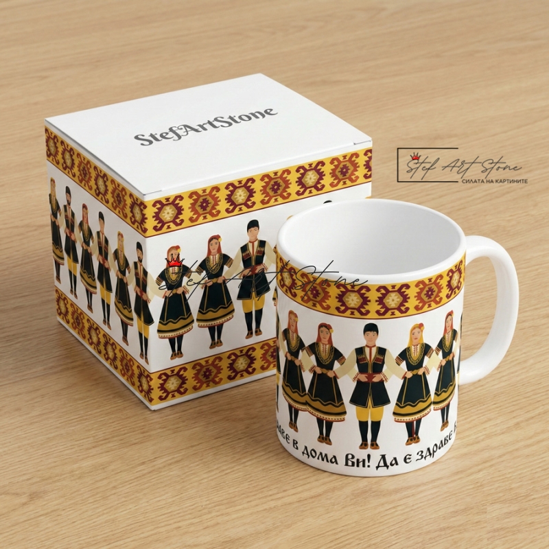 Ако търсите чаша с надпис, който да носи послание и топлина, този модел е правилният избор. Дизайнът съчетава реалистична красота на фолклора със силата на думите.