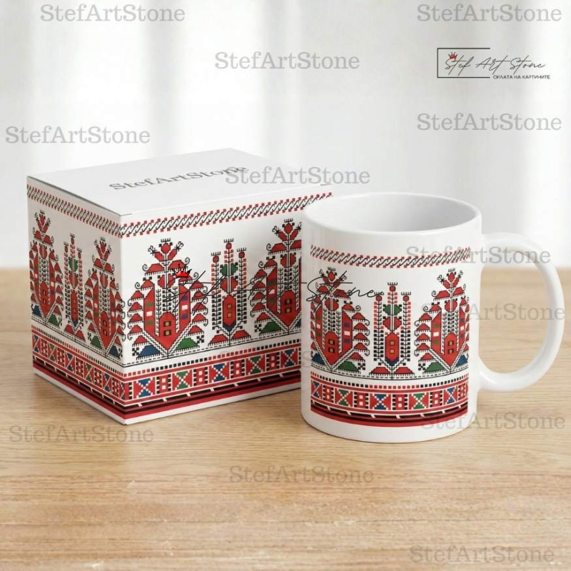 - ✅ Живи традиции: Богатите цветове и сложните орнаменти са отпечатани чрез висок клас сублимация. Чашата е напълно безопасна за съдомиялна машина и ще запази красотата си дълго време.