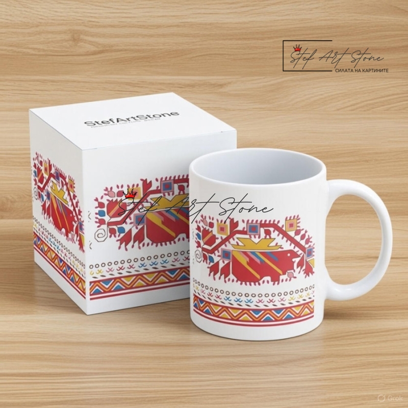 - Комбинативност: Този "чист" фолклорен мотив се допълва идеално с нашите чаши с надписи. Заедно те могат да образуват стилен комплект за подарък – едната чаша носи мъдростта на символите, а другата – силата на думите.