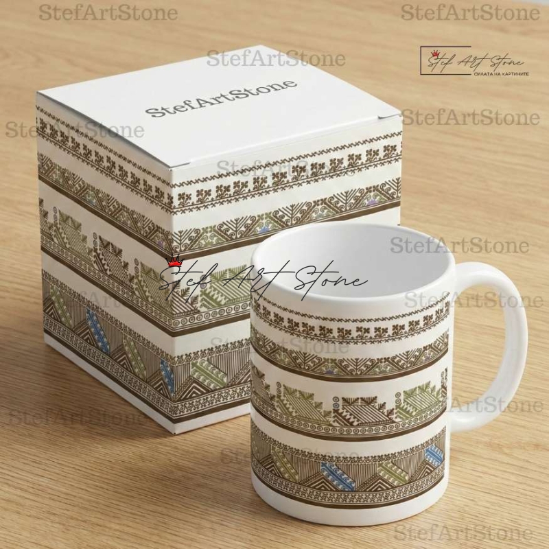 Всяка чаша от серия "Възраждане" пристига при вас в красива тематична кутия, която повтаря мотива на самата шевица. Не е нужно да мислите за допълнителна опаковка – получавате напълно завършен и стилен подарък, готов за връчване веднага!