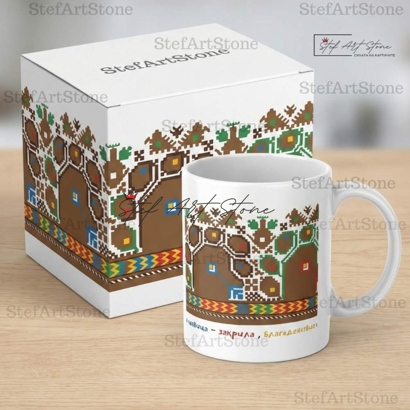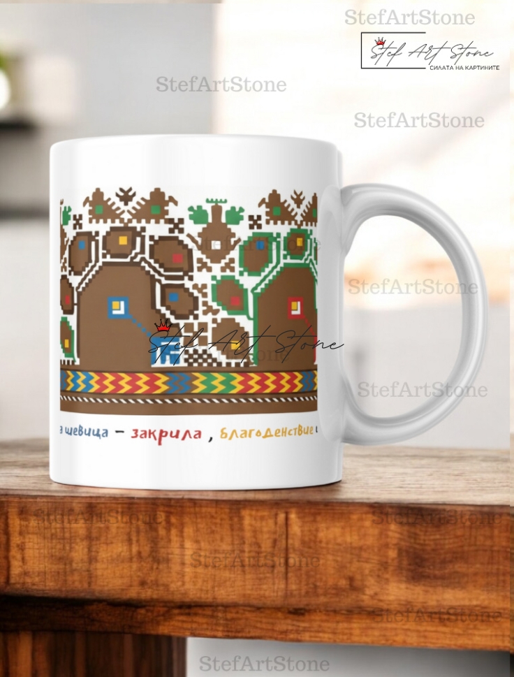 - Думите имат значение: В основата на дизайна е вплетено посланието: "Шевица – закрила, благоденствие". Това превръща чашата в идеален дар за освещаване на нов дом, за сватба или за хора, на които искате да дарите сигурност.