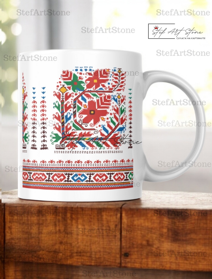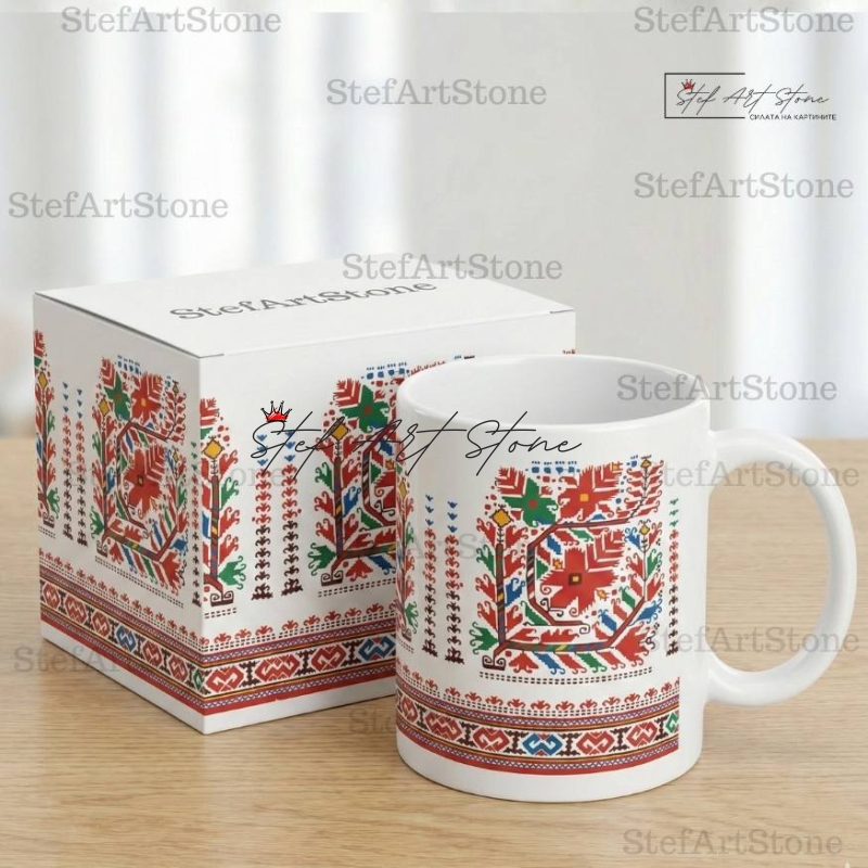 Всяка чаша от серия "Възраждане" пристига при вас в красива тематична кутия, която повтаря мотива на самата шевица. Не е нужно да мислите за допълнителна опаковка – получавате напълно завършен и стилен подарък, готов за връчване веднага!
