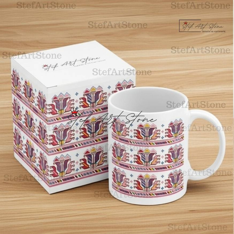 Всяка чаша от серия "Възраждане" пристига при вас в красива тематична кутия, която повтаря мотива на самата шевица. Не е нужно да мислите за допълнителна опаковка – получавате напълно завършен и стилен подарък, готов за връчване веднага!
