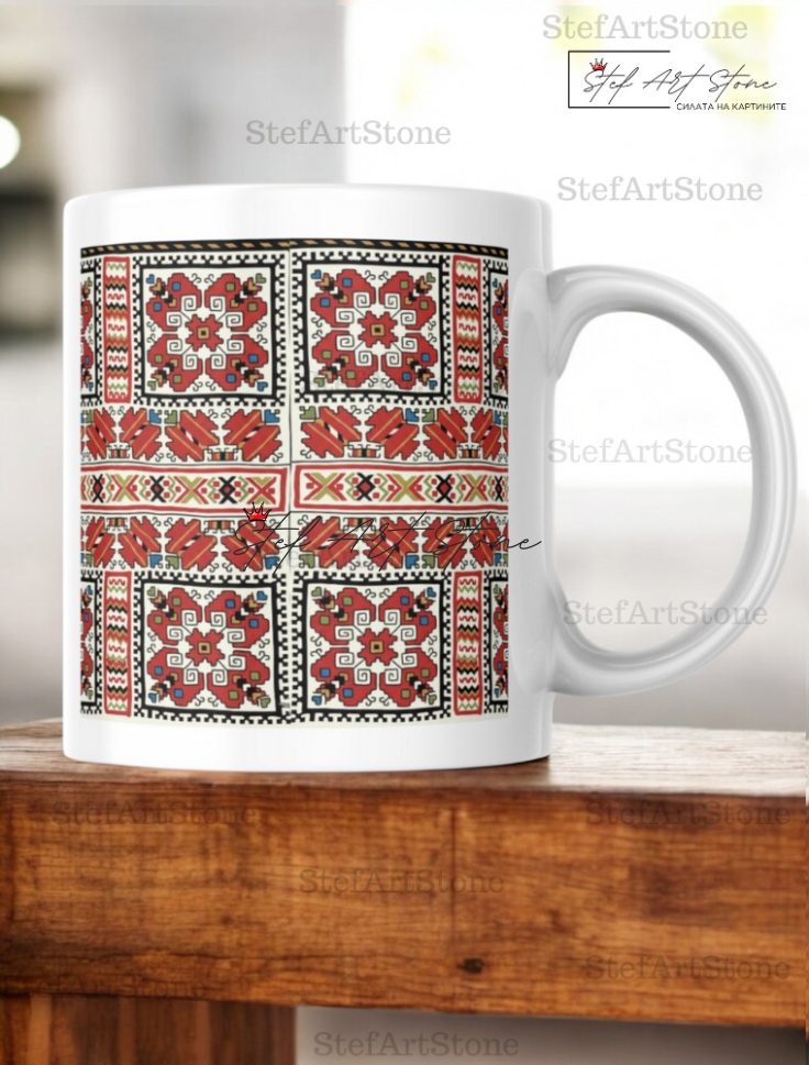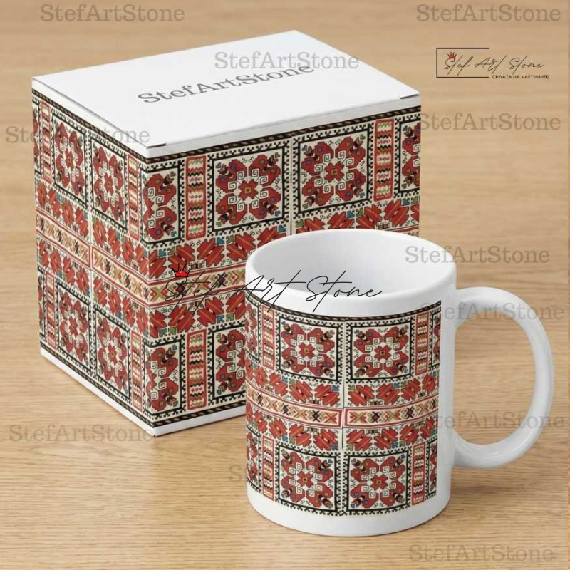 Всяка чаша от серия "Възраждане" пристига при вас в красива тематична кутия, която повтаря мотива на самата шевица. Не е нужно да мислите за допълнителна опаковка – получавате напълно завършен и стилен подарък, готов за връчване веднага!