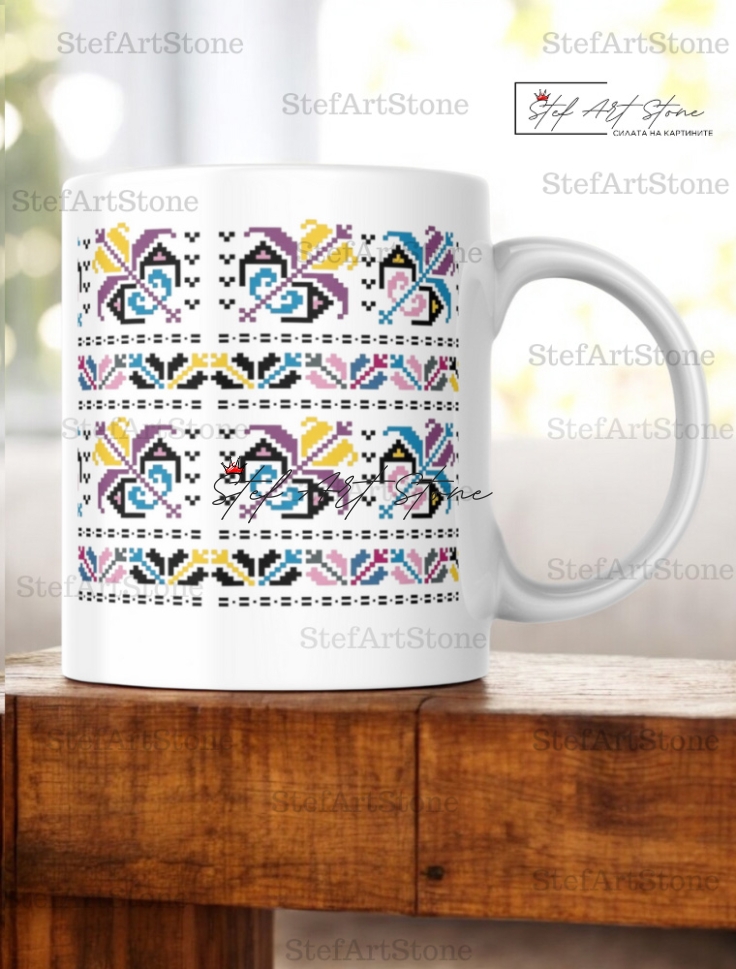Тази керамична чаша е глътка свежест сред традиционните червени мотиви. Тя носи настроение, лекота и усещане за събуждане на природата, благодарение на своята уникална и жизнерадостна цветова гама.