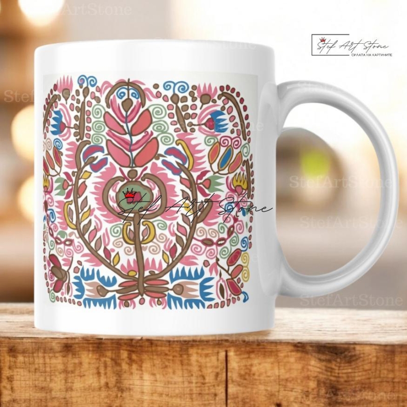 Керамична Чаша със Софийска Писана Шевица "Дървото на Живота" – Чаши с български шевици