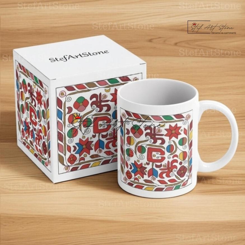 Всяка чаша от серия "Възраждане" пристига при вас в красива тематична кутия, която повтаря мотива на самата шевица. Не е нужно да мислите за допълнителна опаковка – получавате напълно завършен и стилен подарък, готов за връчване веднага!