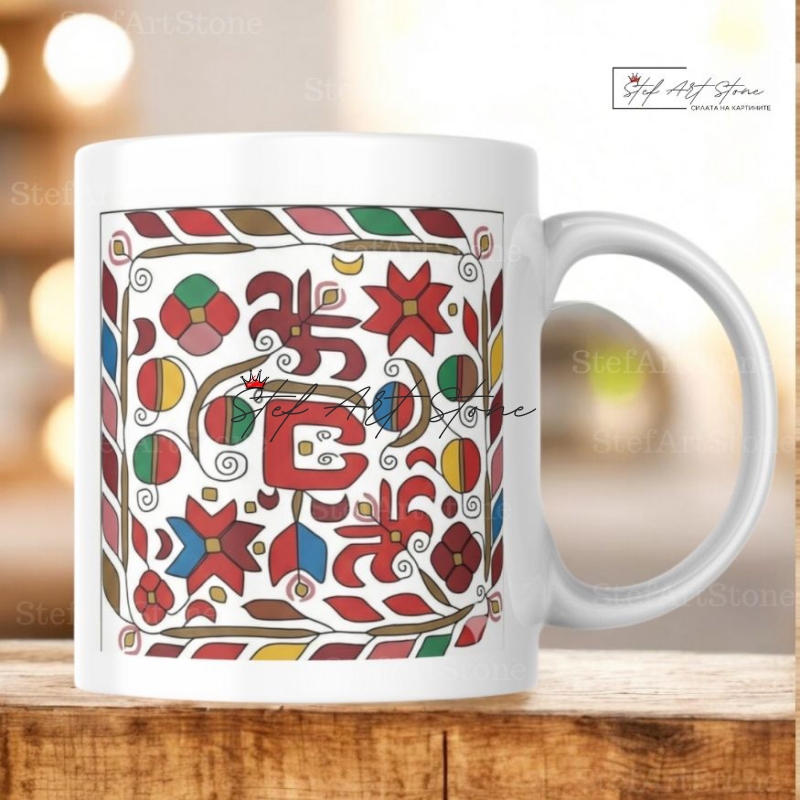Керамична Чаша със Софийска Писана Шевица "Космически Код" - Чаши с български шевици