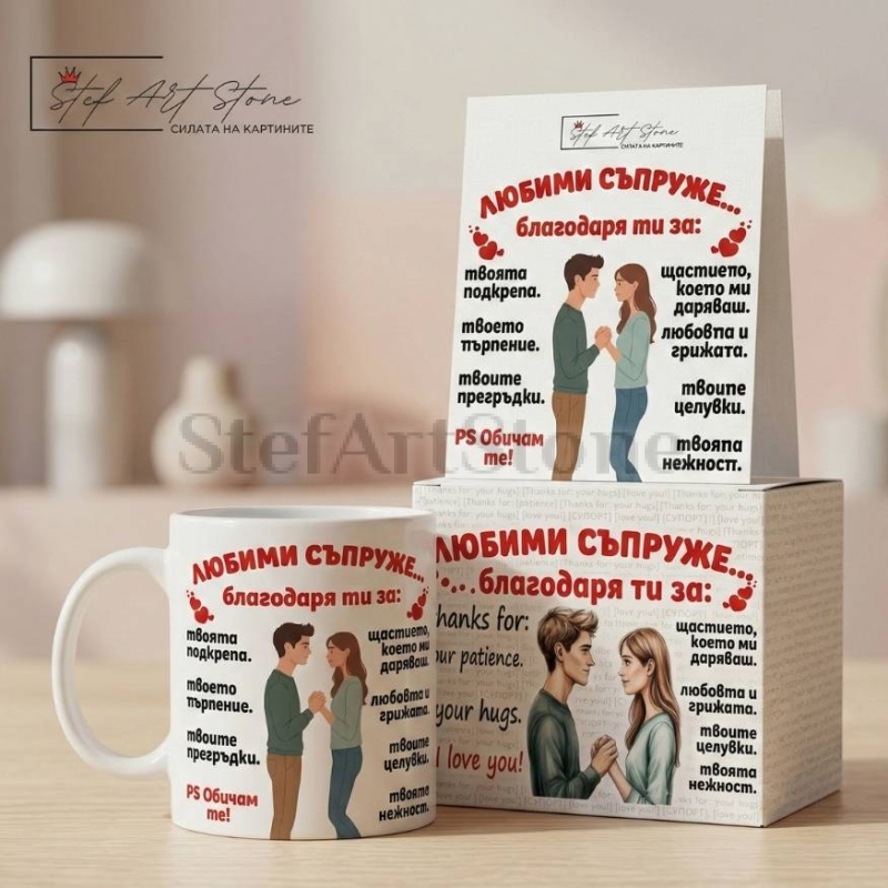 Подаръчен Комплект за Съпруг: Чаша и Картичка с Надпис