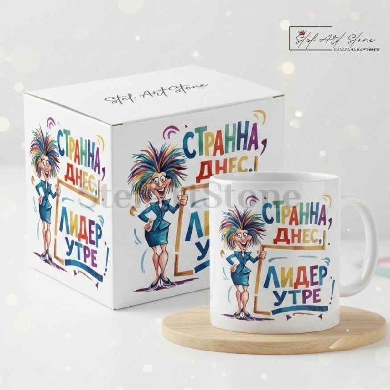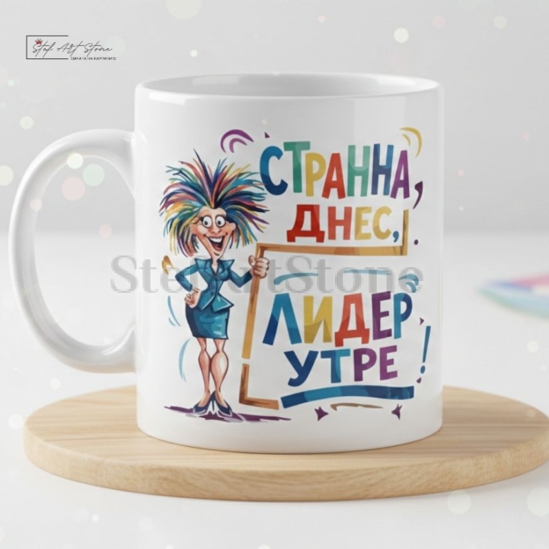 - 😂 Свеж офис хумор: Включва култовия и закачлив надпис "СТРАННА, ДНЕС. ЛИДЕР, УТРЕ!".