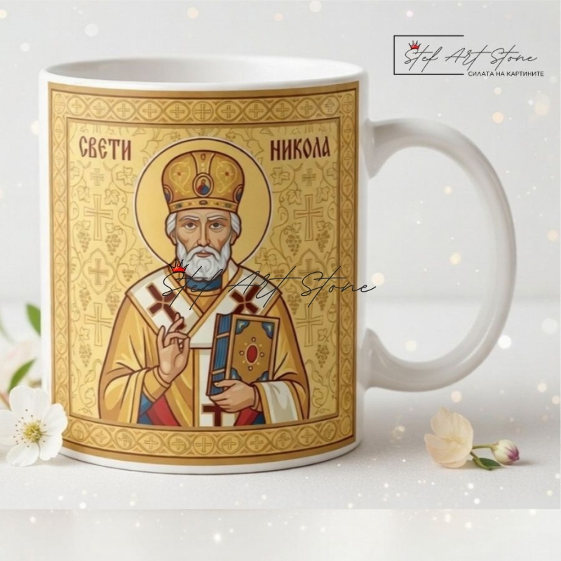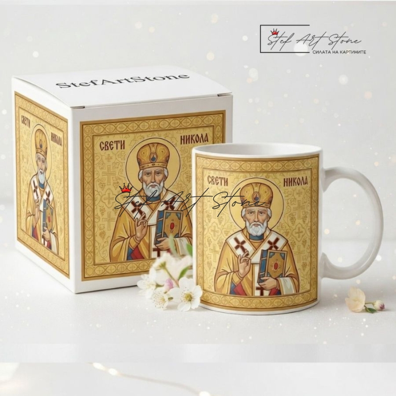 Чаша за Подарък с Икона – Свети Никола (с Кутия) | Чаши за Имен Ден