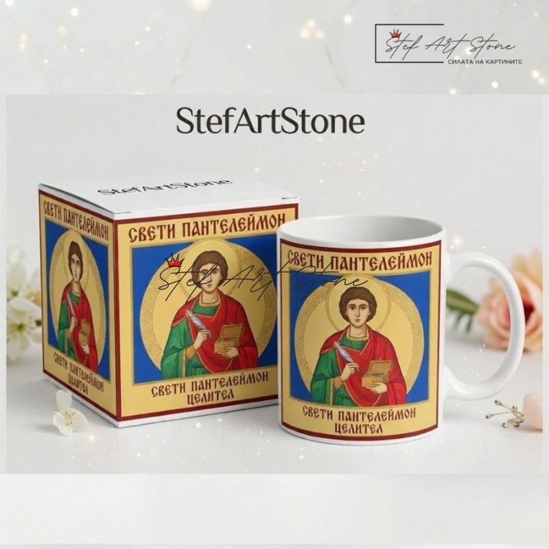 Чаша за Подарък с Икона – Свети Пантелеймон Целител (с Кутия)