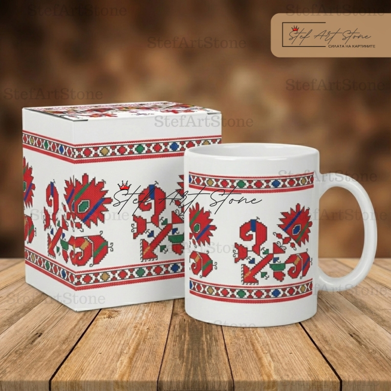 Керамична Чаша с Казанлъшка Шевица "Тракийско Плодородие" (Клас ААА+ в Кутия)