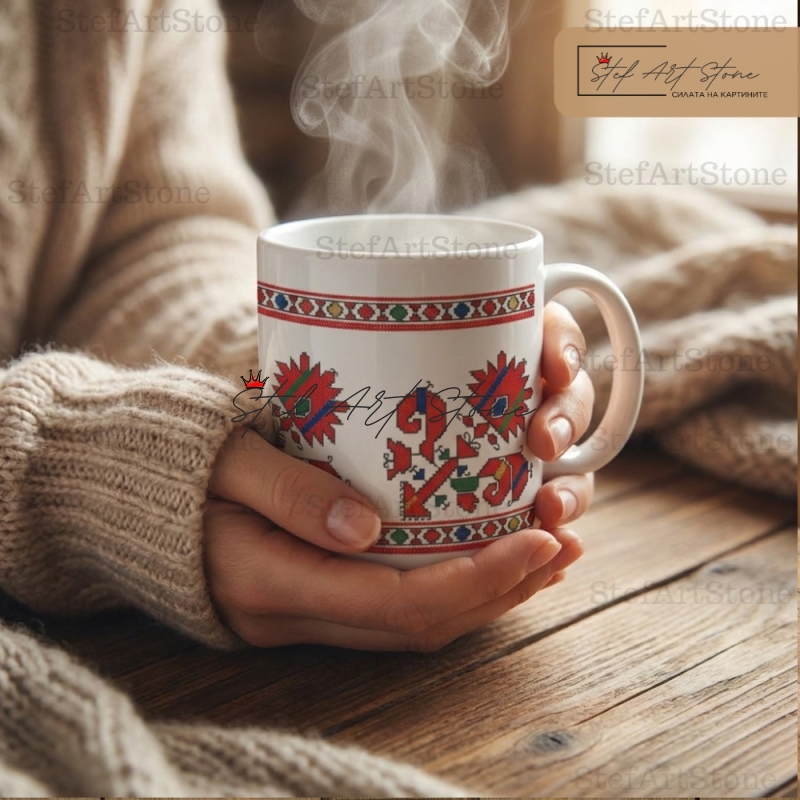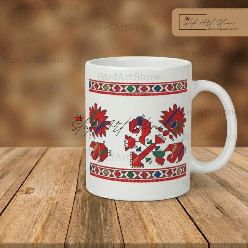 - ☕ Премиум Керамика (AAA+): Искрящо бяла основа, която прави сложния тракийски орнамент да изпъква с всички детайли.