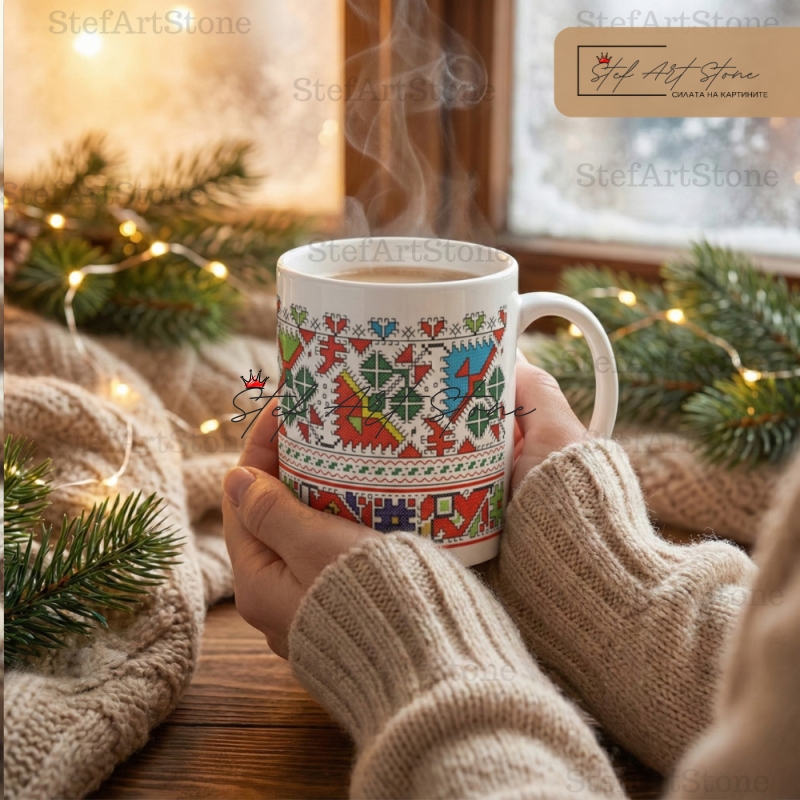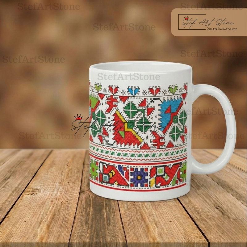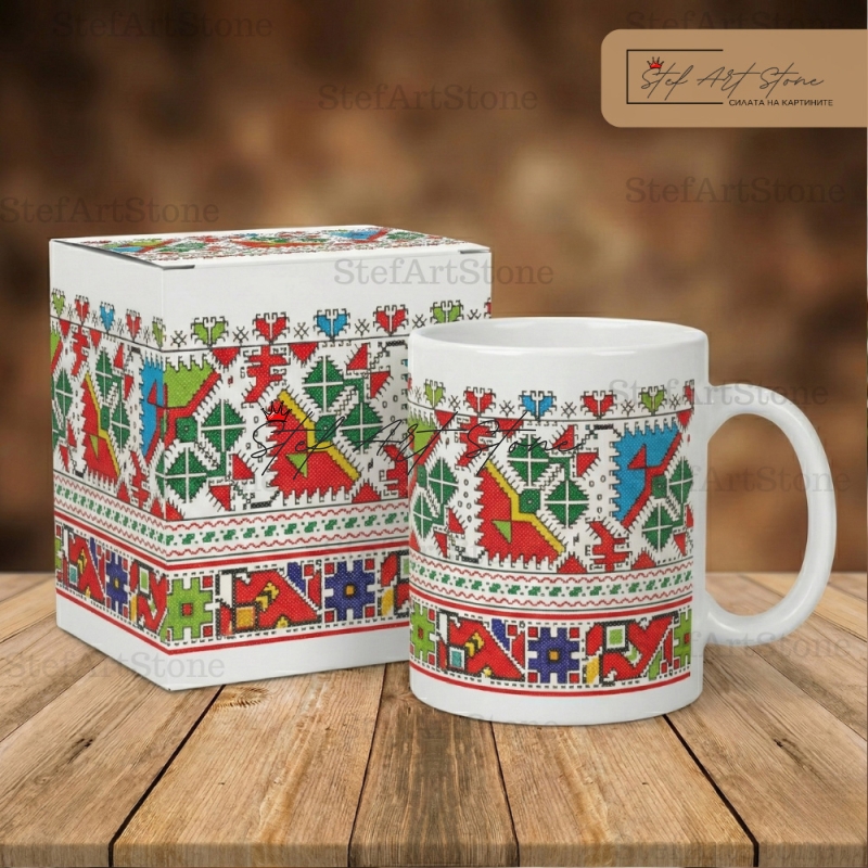 Керамична Чаша с Шевица "Цветна Хармония" – Многоцветен Мотив (Клас ААА+ в Кутия)