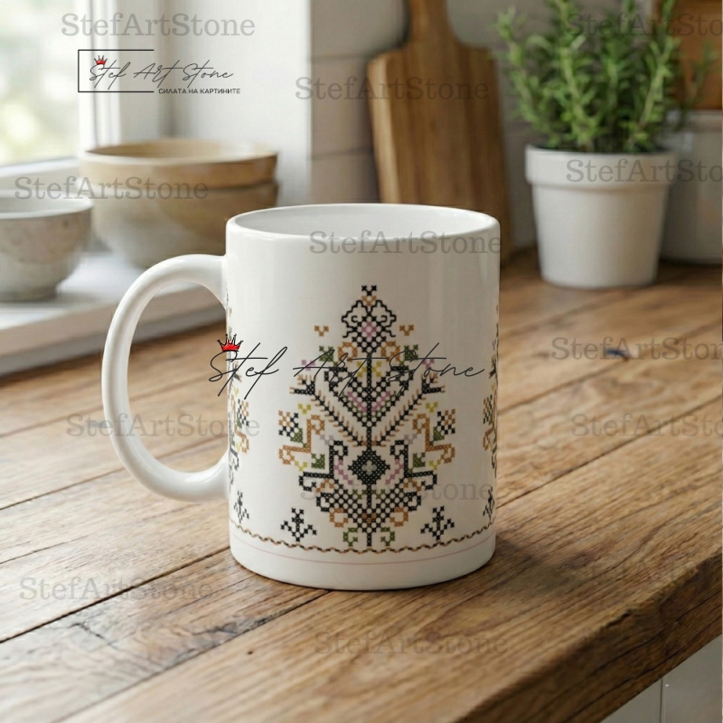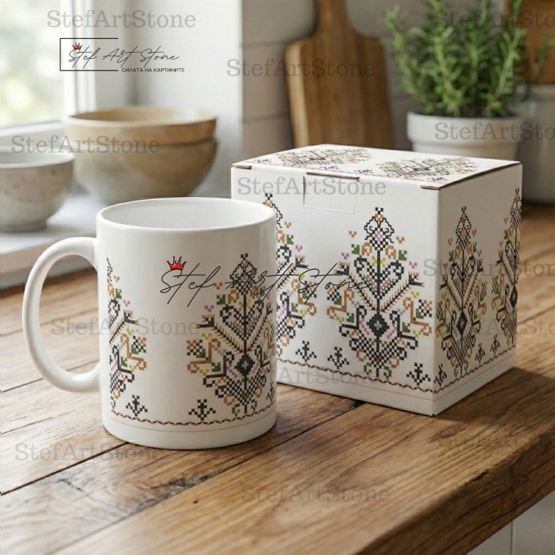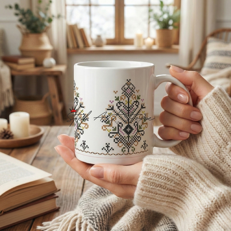 - ☕ Висок Клас (AAA+): Керамика с идеален блясък, върху която фините кръстат бод детайли изглеждат като истинска бродерия.