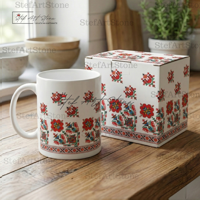 Керамична Чаша с Шевица "Цветна Градина" – Символ на Живота (Клас ААА+ в Кутия)