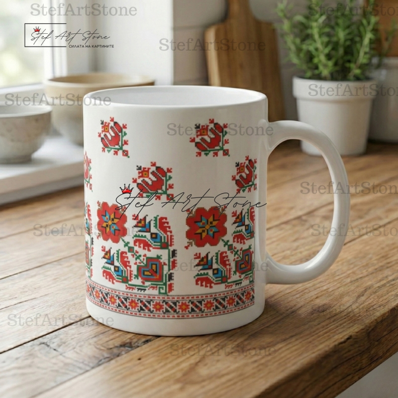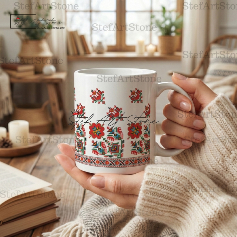- Изобилието: Плътната шарка, която обикаля цялата чаша, символизира плодородието на българската земя и пълната къща.