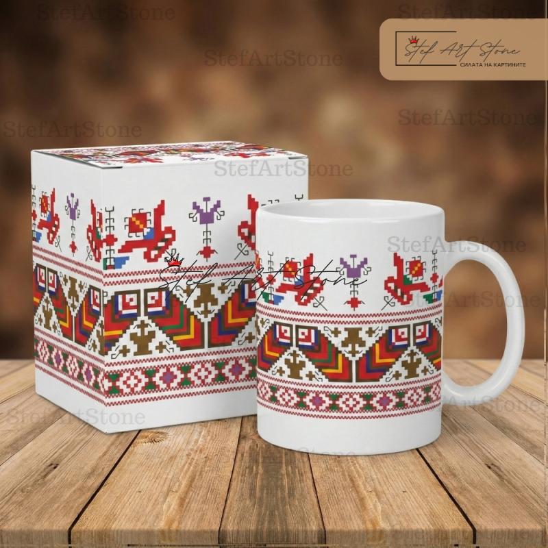 Керамична Чаша с Шевица "Весело Хоро" – Символ на Единството (Клас ААА+ в Кутия)