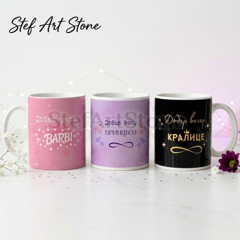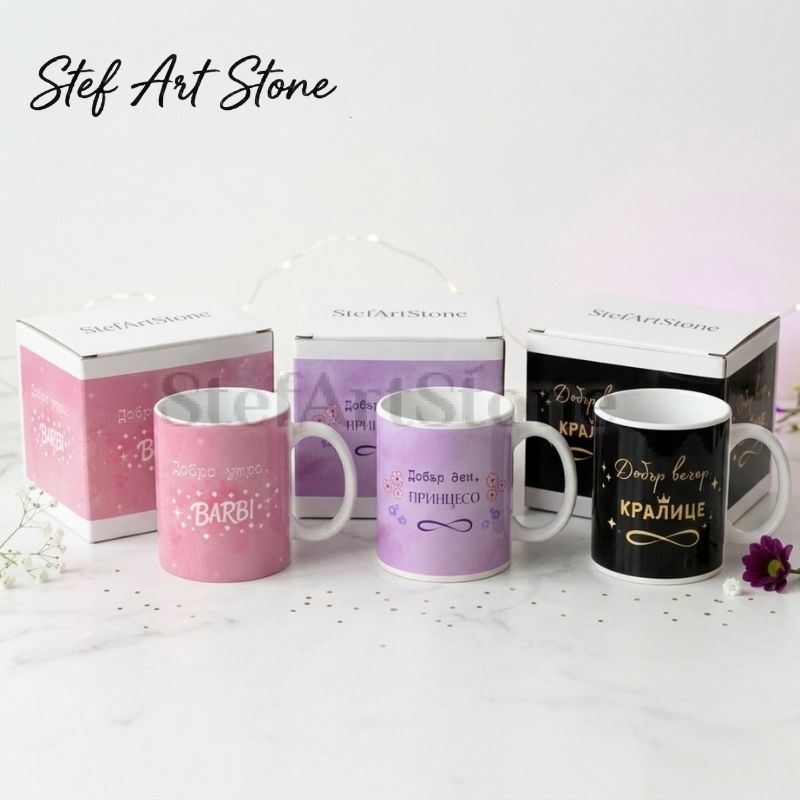 Комплектът е изключително подходящ и като чаша по поръчка, тъй като можем да персонализираме всяка една от тях с име на гърба. Представете си изненадата на лицето й, когато разбере, че сте помислили за всеки нейн момент! Висококачествената керамика и устойчивият печат гарантират, че тези чаши ще бъдат нейната любима компания години наред, напомняйки й колко специална е тя.