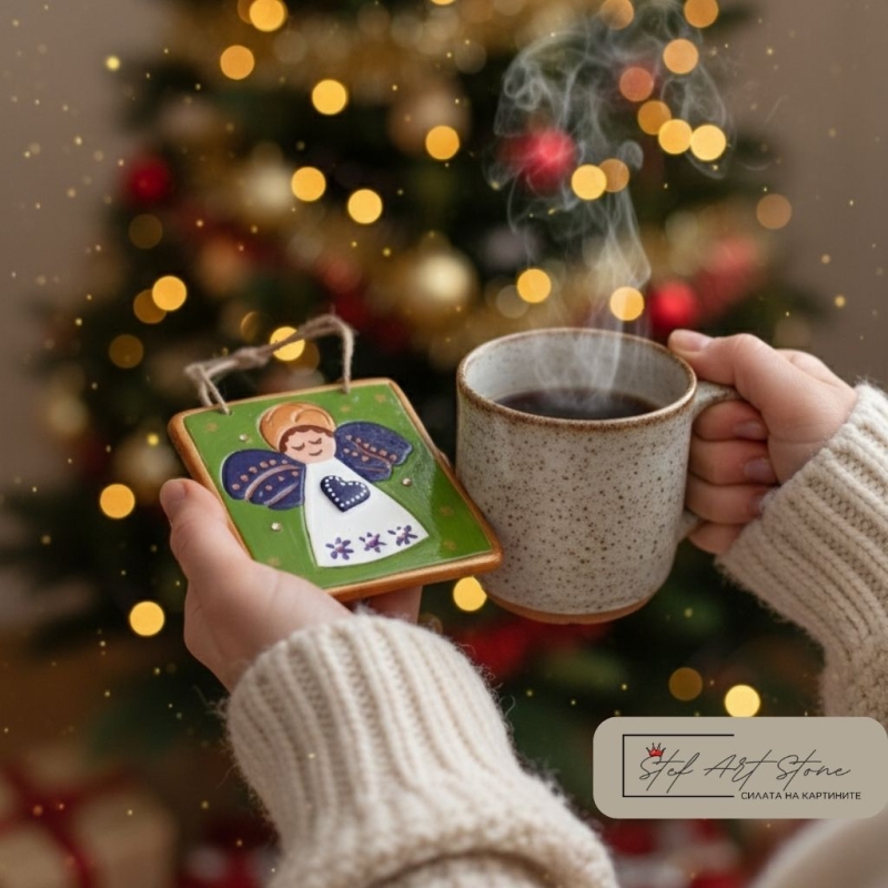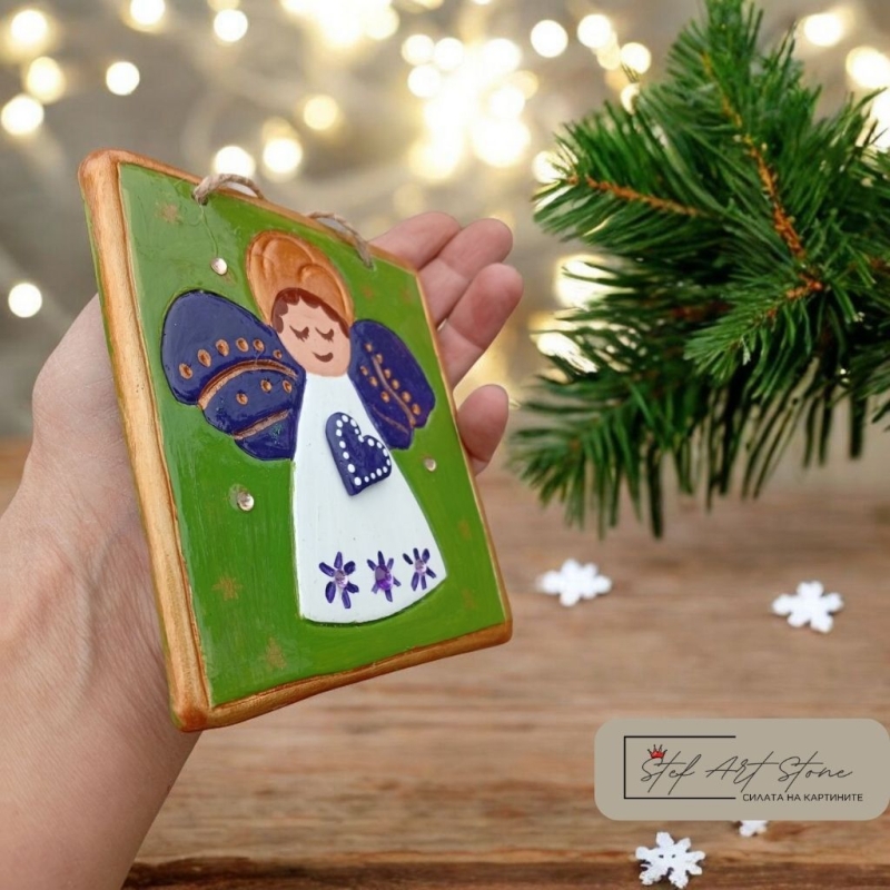 - 👼 Ръчно изработено керамично мини пано с ангелче