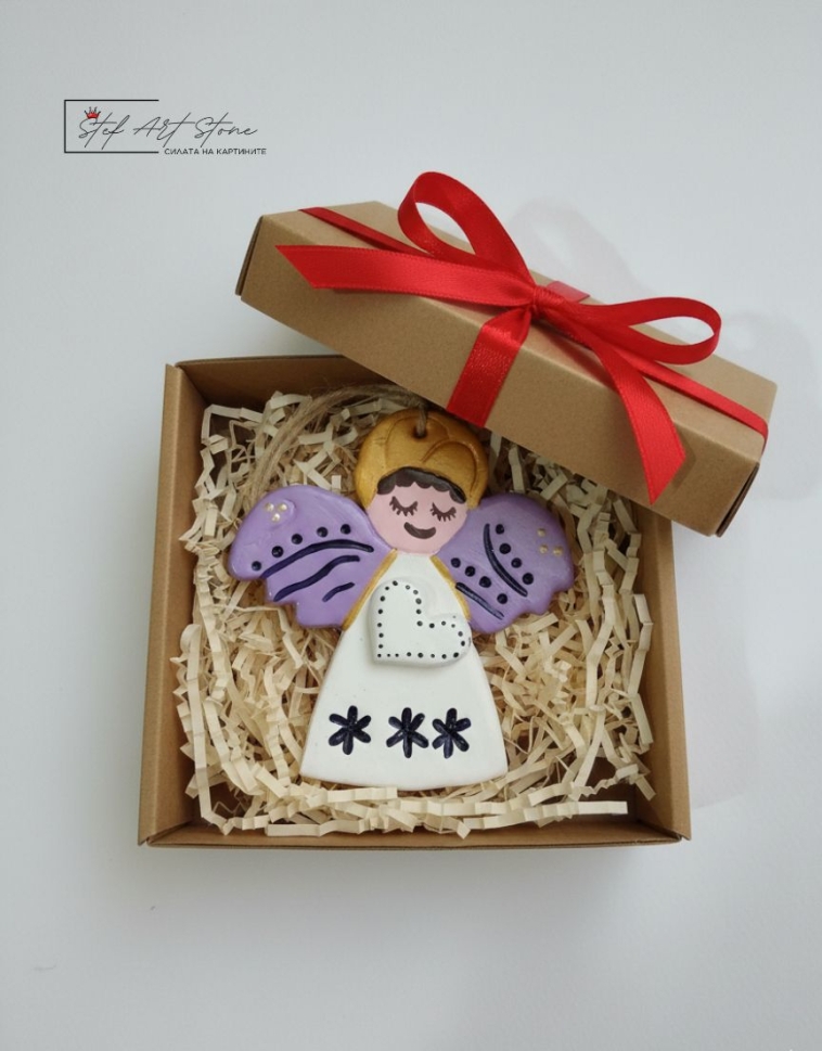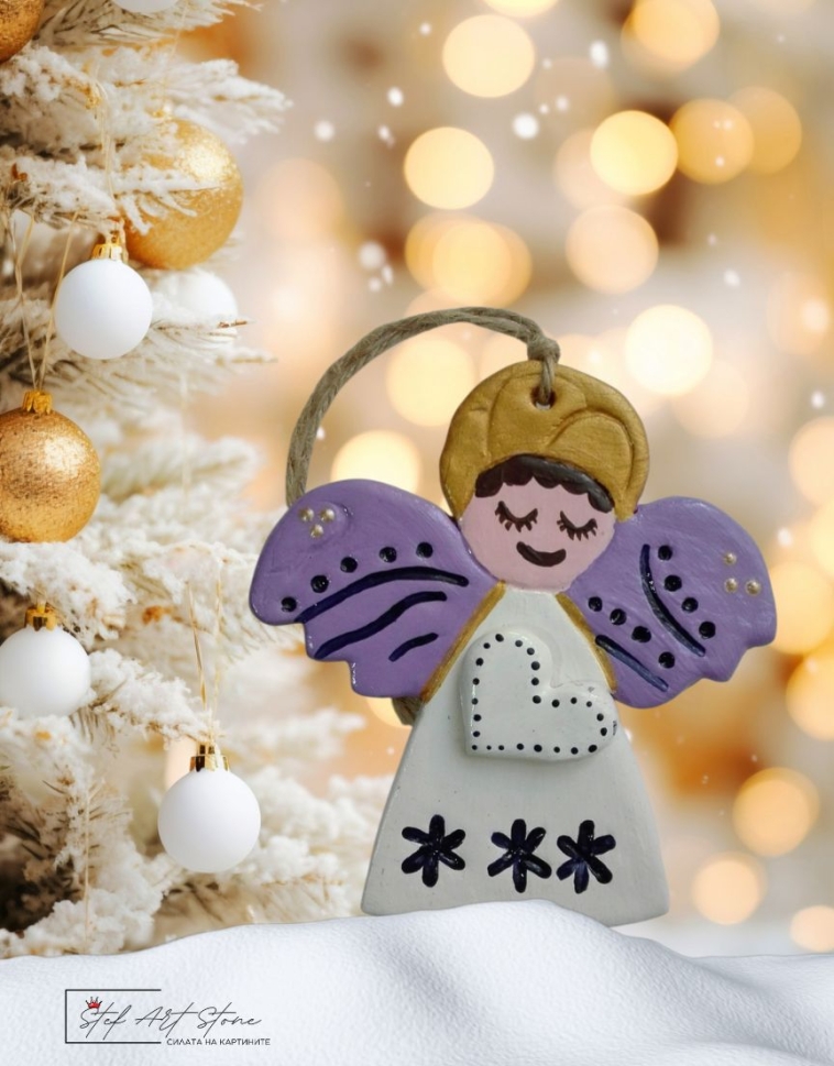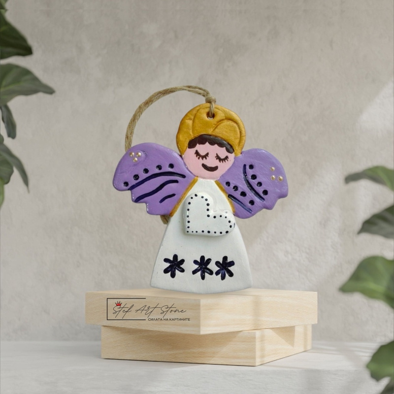 - • 😇 Ръчно изработен керамичен ангел с лилави крила