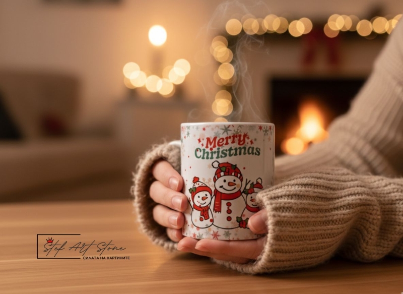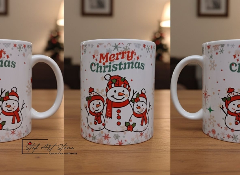 Коледна чаша "Весели Снежни Човеци" – Празничен подарък за уютни дни