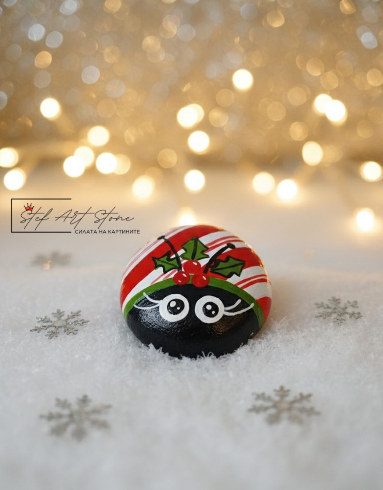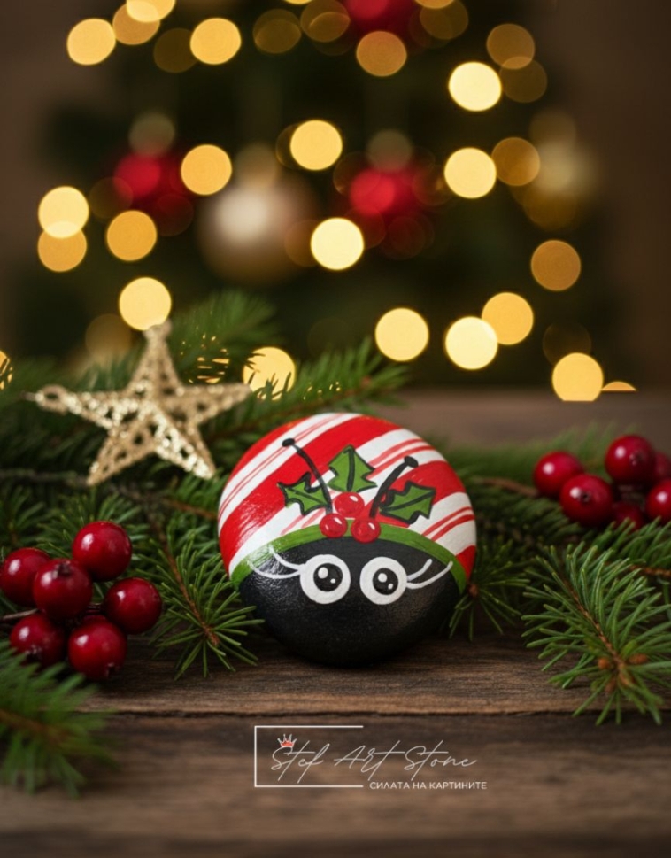 ПРЕМИУМ Коледна Украса: Представяме Ви Камък Калинка с Празничен Дизайн!
