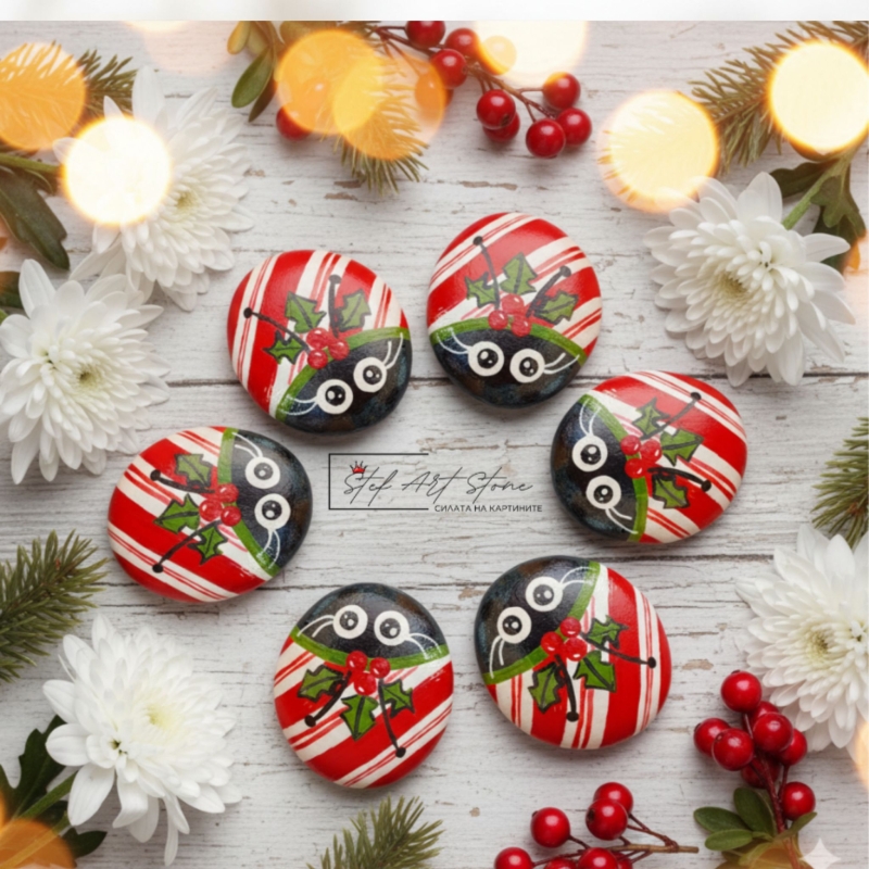 Коледна Декорация: Рисуван Камък Калинка с ИМЕЛ 🐞 | Луксозен Арт Подарък