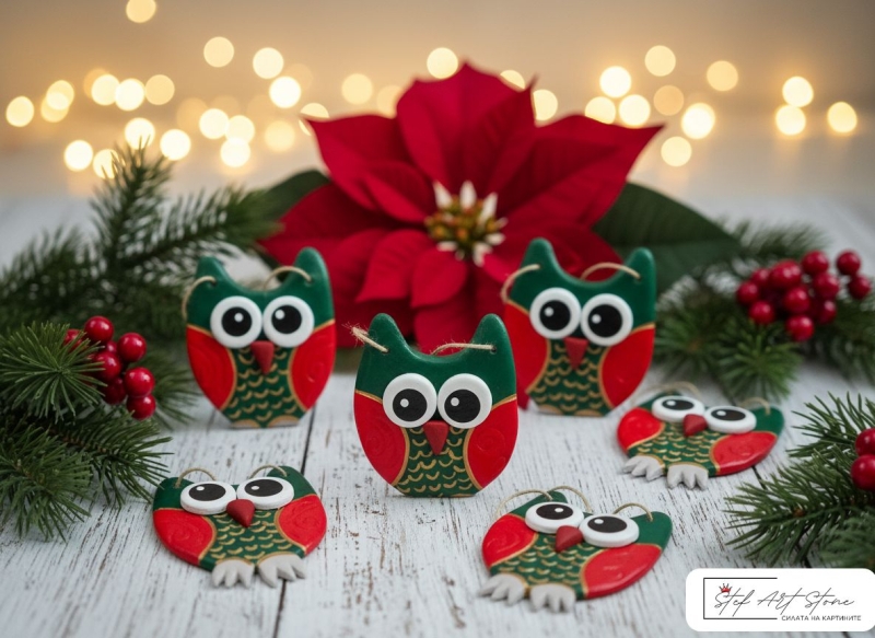 - 100% Авторска Ръчна Изработка: Всяко бухалче (12 см) е уникално моделирано и рисувано индивидуално.