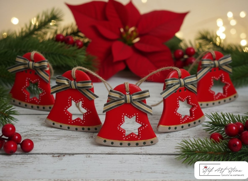 Готови ли сте за истински празничен звън? Представяме ви най-класическата и най-стилната Ръчно Изработена КОЛЕДНА УКРАСА ЗА ЕЛХА – Камбанка! Този Авторски Премиум Орнамент е моделиран от керамика/глина и старателно рисуван в наситено червено. С елегантна панделка и изрязана звезда в центъра, тази камбанка е задължителен елемент от Вашата празнична декорация.